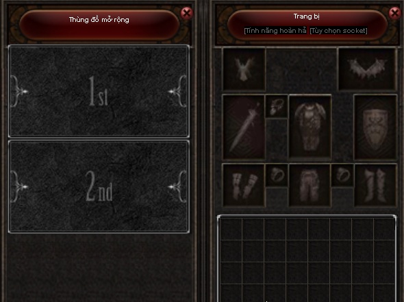 Bình thường mỗi nhân vật có một túi chứa đồ có diện tích 8x8 ô, tuy nhiên có thể túi nhân vật không đủ chỗ chứa những hành trang mà bạn mang theo, Rất có lợi khi bạn cắm Auto tự đánh, tự nhặt đồ mà nhân vật không thể nhặt được vì túi nhân vật đã Full nên BQT sẽ cung cấp thêm cho bạn 2 khoang chứa đồ nữa, mỗi khoang có diện tích 4x8 ô.